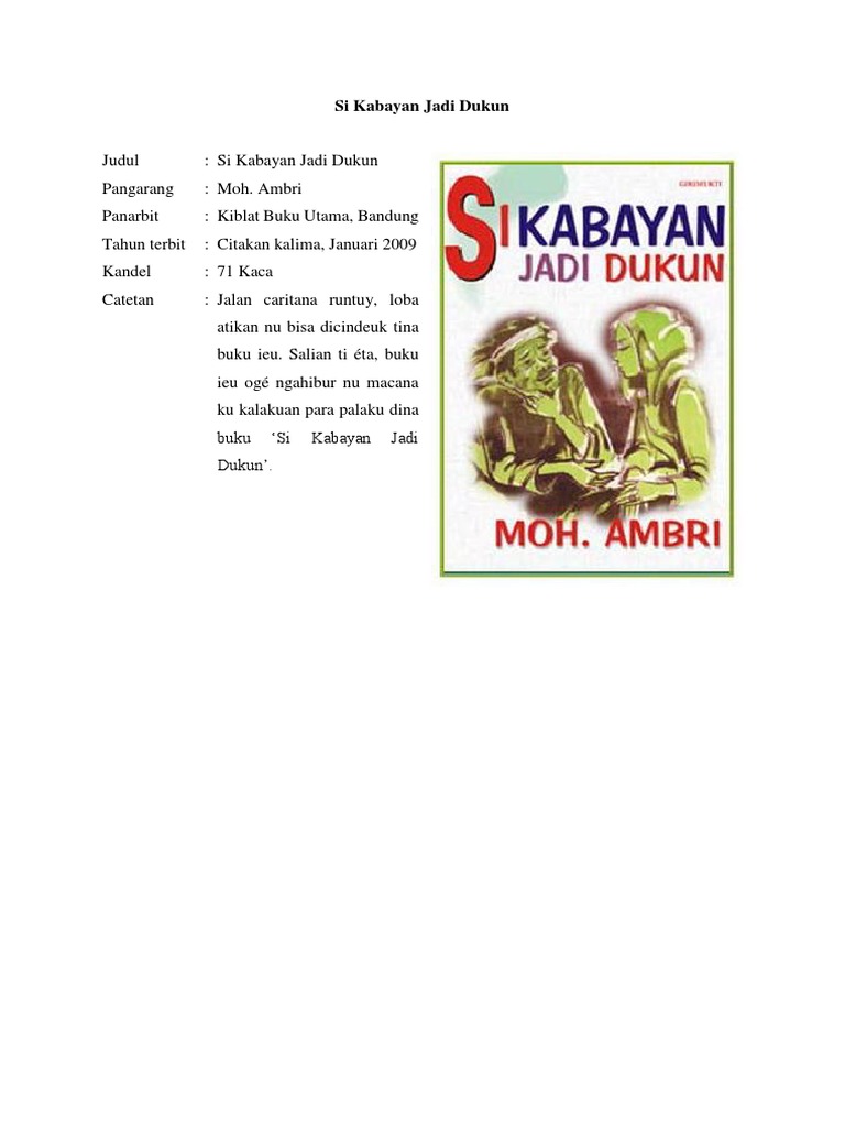 Dongeng kabayan yang kakak ceritakan pada kesempatan ini, kakak ambil dari kumpulan dongeng. Kami membuka kesempatan bagi 200 orang di seluruh indonesia yang kriteria istri idaman caroge 2016 versi si kabayan : Resensi buku novel mariposa karya luluk hf. Si kabayan jadi dukun by ambri, moh., unknown edition novel in sundanese, pref. With azwar an, nike ardilla, salim bungsu, ade harun.